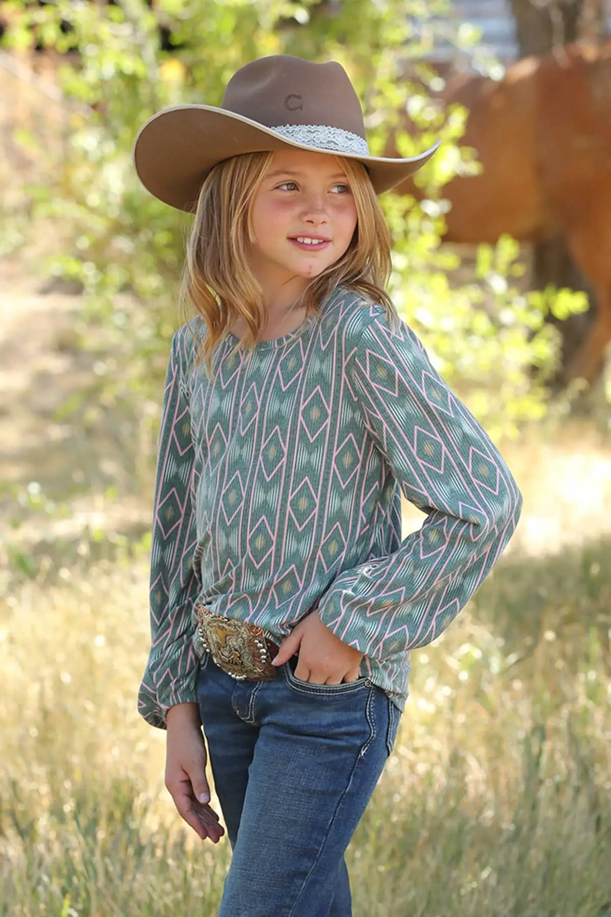 Cruel Girl® Girls Diamond Print Long Sleeve Rib Knit Tee Shirt