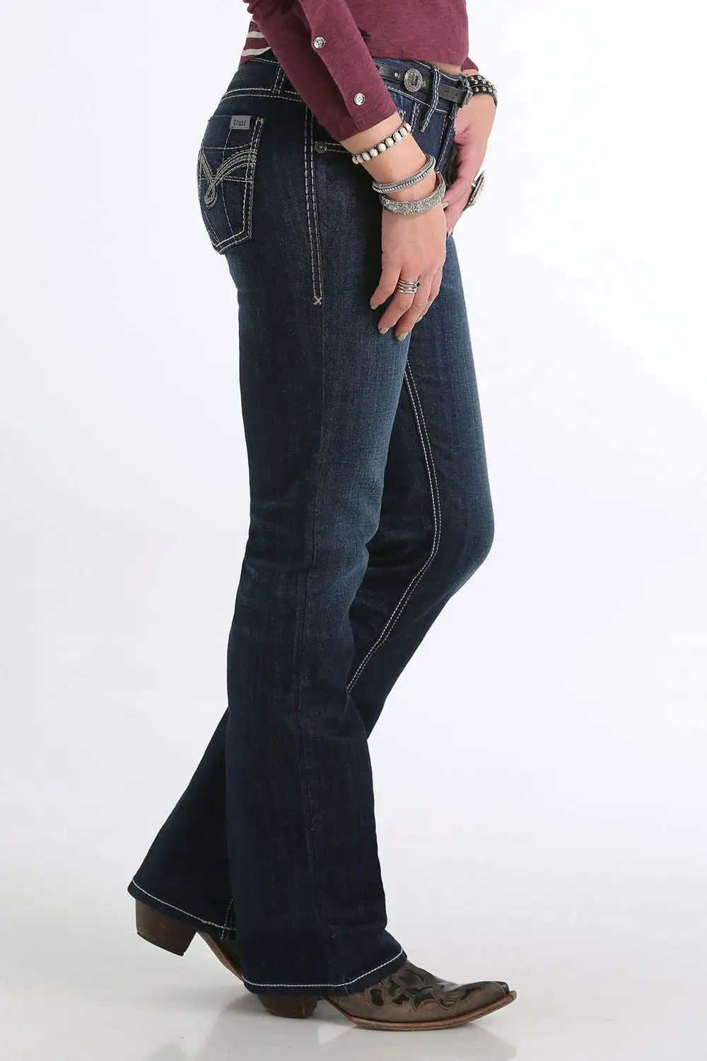 Looking great was never so easy. The November ABBY is the jean that can take you from the arena to any special event. Hand sanding, whiskers and chevrons partner with a rinse finish to create a classy and versatile jean, while charcoal and metallic stitching on the back pockets give it the perfect amount of shimmer.