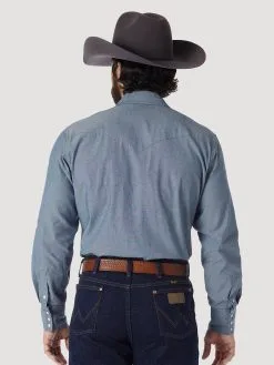 Wrangler® Men’s Cowboy Cut® Denim Long Sleeve Western Work Shirt – Chambray