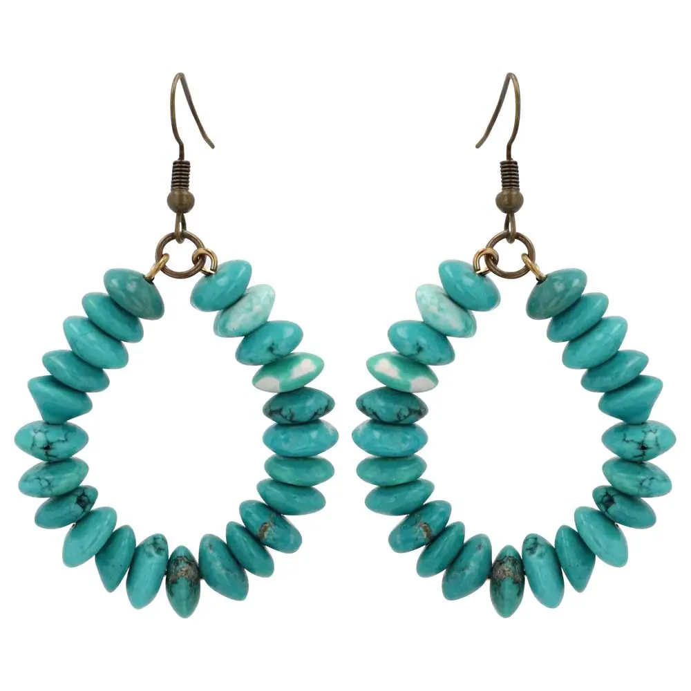 Simple, but stunning! These Attitude Earrings are made of small turquoise stones that make a classic teardrop shape. These gorgeous stones range in colors from sky blue to grass green and everything in between allowing for an organic look. Each teardrop dangles from a hypoallergenic French hook