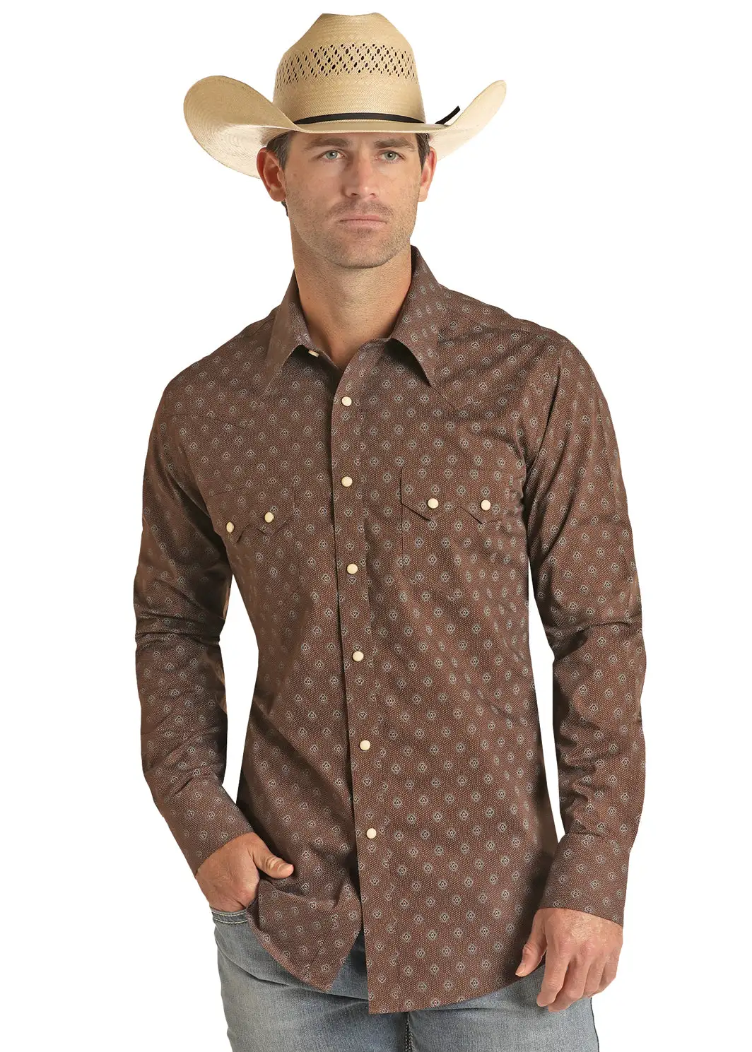 Be the first to review “Panhandle Slim® Men’s Rock N Roll Brown Medallion Vintage Long Sleeve Snap Front Western Shirt” Cancel reply