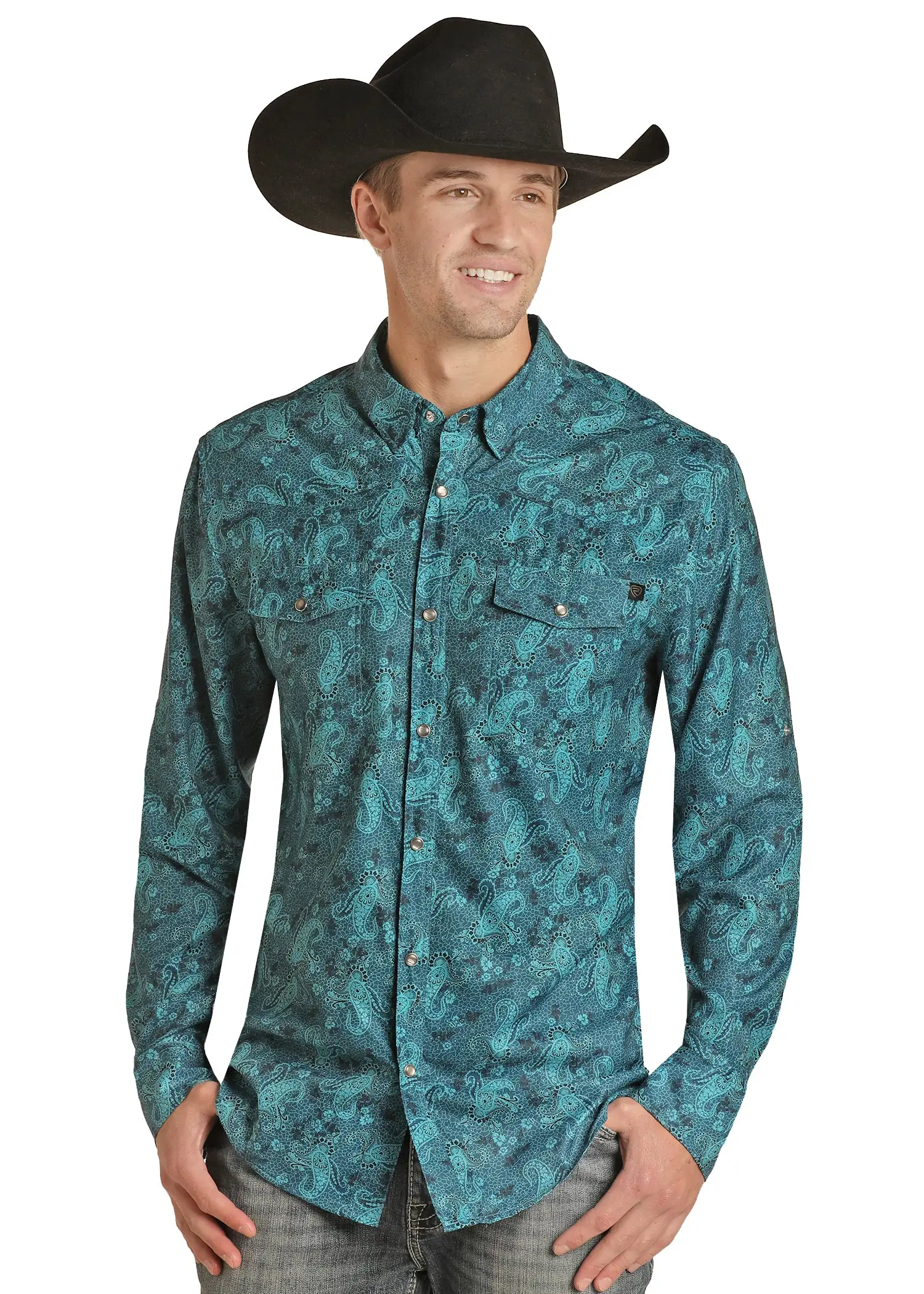 SKU: 7053177094203 Categories: Apparel, Men Tags: Chest-pockets, Long-sleeve, Men, Paisley-print, Panhandle-slim, Shirts, Snap-closure, Teal