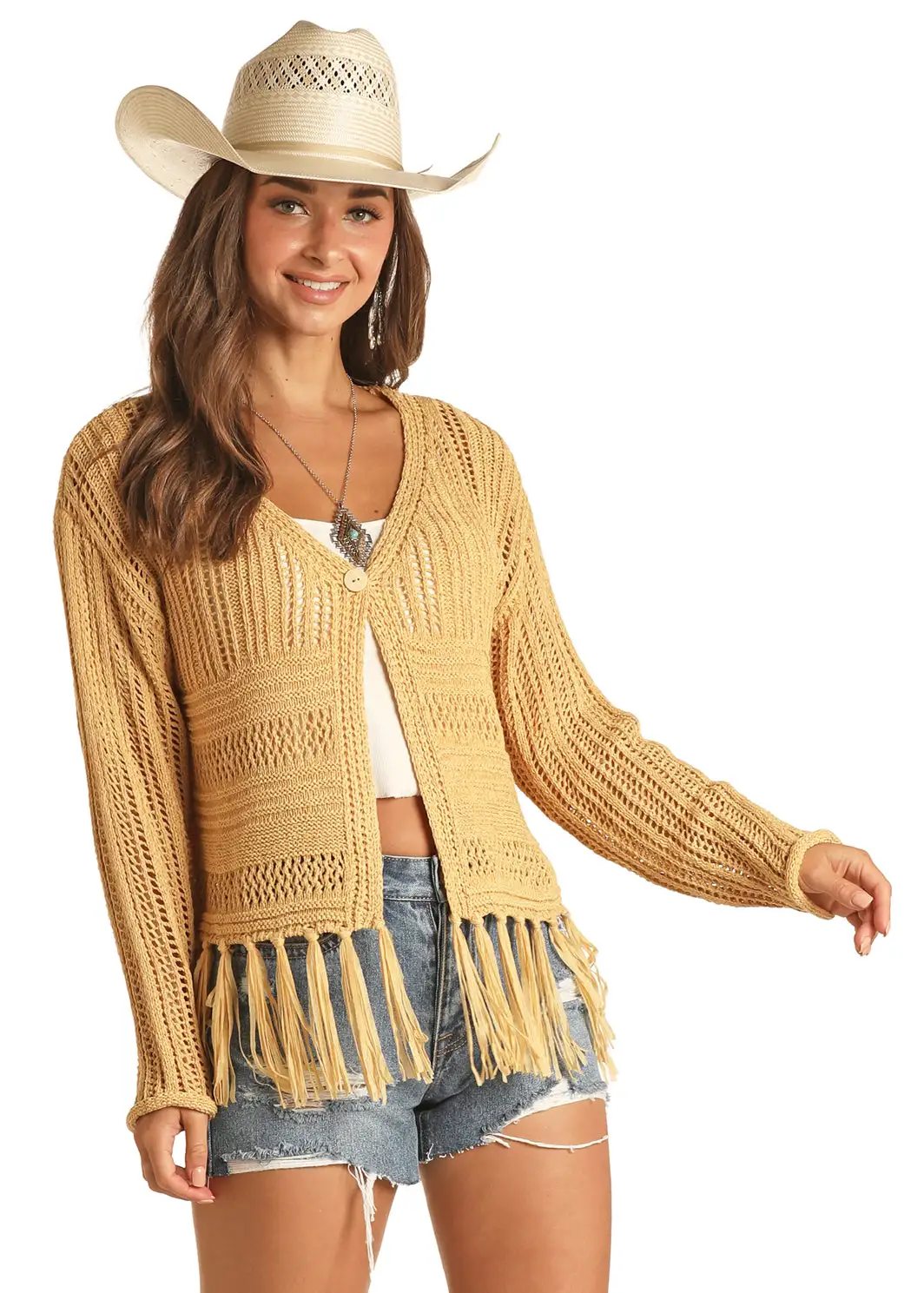 Panhandle Slim® Women’s Rock N Roll Open Fringed Cardigan Sweater