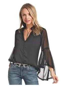 Panhandle SlimĀ® Women’s Sheer Flared Sleeve Button Front Western Blouse