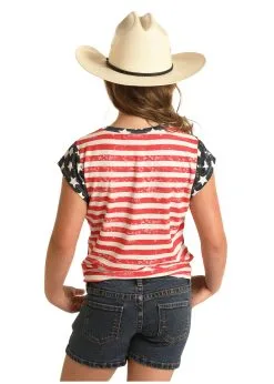 Panhandle Slim® Girl’s Rock N Roll Flag Print Tee Shirt