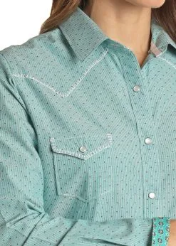Panhandle SlimĀ® Women’s Rock N Roll Turquoise Long Sleeve Snap Front Western Shirt