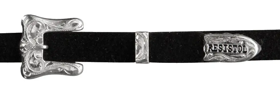 - Self-banded with buckle accent